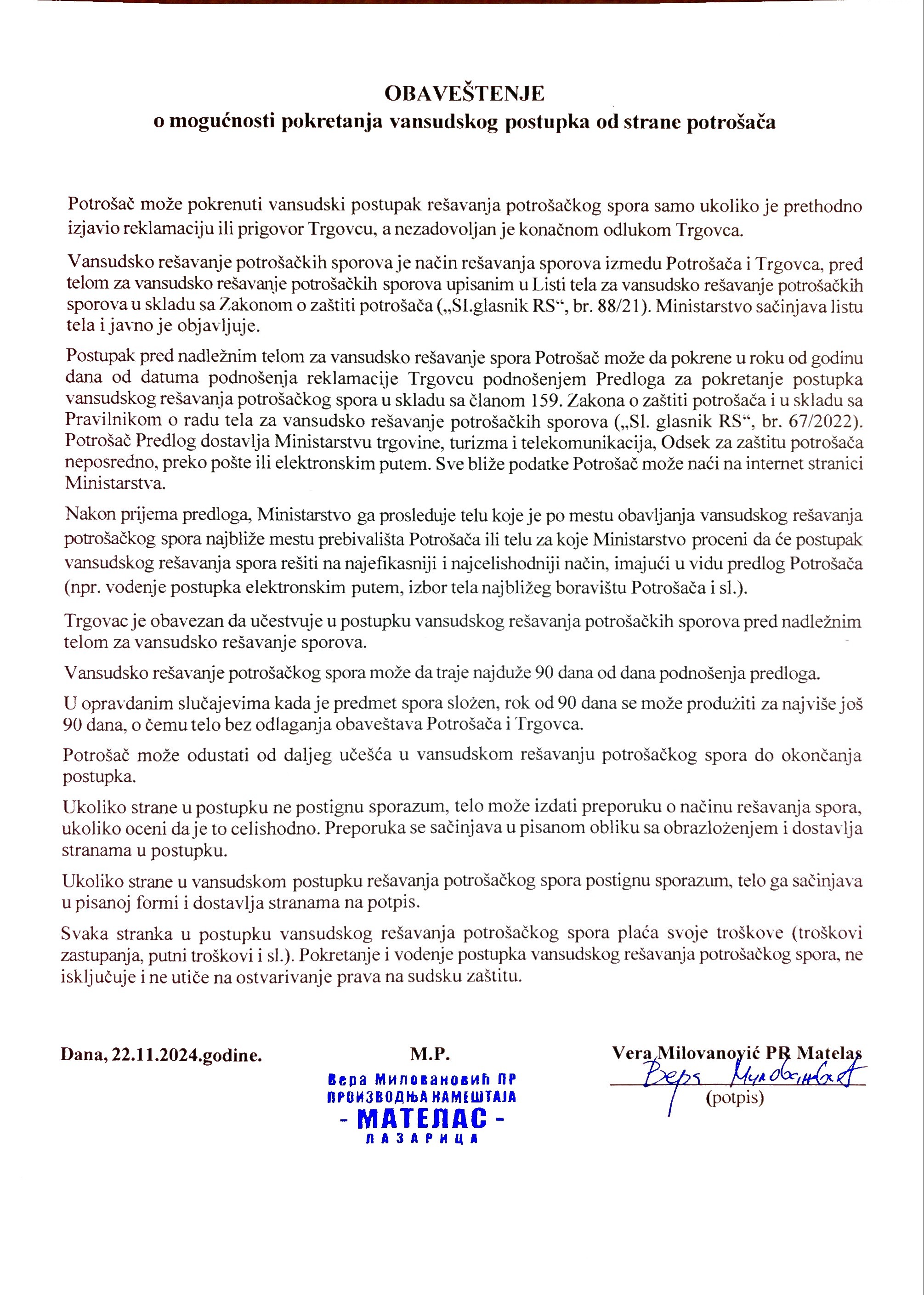 - Vansudsko postupanje: Obaveštenje o mogućem pokretanju vansudskog postupka možete pogledati ovde